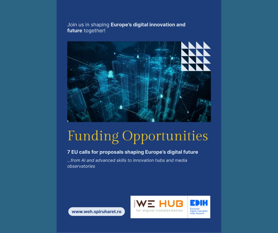 5.Call for proposals - Consolidation of the Network of European Digital Innovation Hubs (EDIHs with reinforced AI focus) (DIGITAL-2026-EDIH-EU-EEA-09-CONSOLIDATION-STEP) The EU is launching a call for proposals for consolidation of the Network of European Digital Innovation Hubs (EDIHs with reinforced AI focus) (DIGITAL-2026-EDIH-EU-EEA-09-CONSOLIDATION-STEP) under the Digital Europe Programme. Information and procedures on how to apply can be found in the EU Funding and Tender Portal.